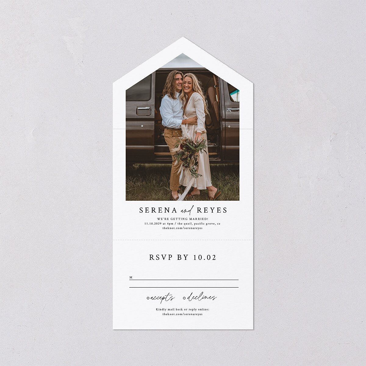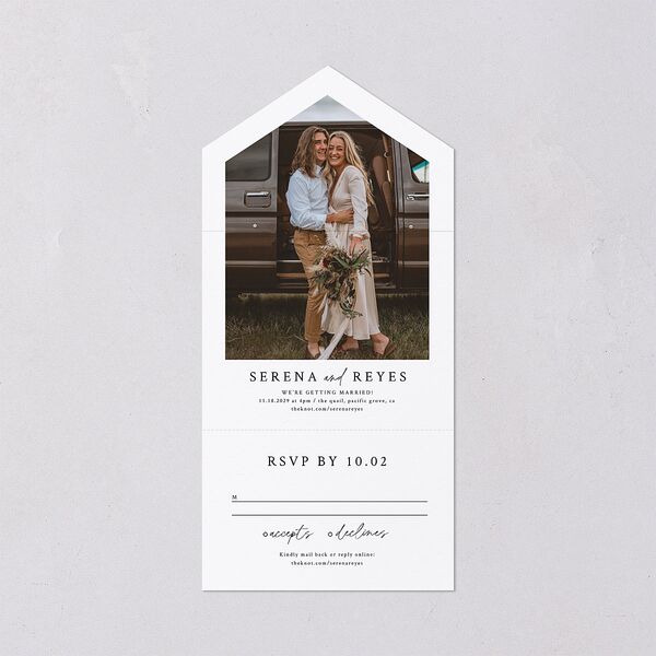 Designed to help you save, each card includes an invitation and tear-off RSVP postcard that folds up to become its own envelope with free address printing—no separate envelope needed. All you have to do is fold, seal and send. Includes three clear stickers for USPS-required easy sealing.