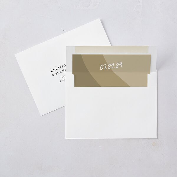 Your guests will be greeted with a burst of retro-inspired energy when they open these bold envelope liners. Wavy bands of color sweep diagonally across the design in a playful rhythm, while a handwritten-style date floats at the top.