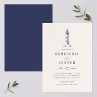 With their elegant blend of serif font and cursive script, these rehearsal dinner invitations make for a stunning start to your wedding weekend. A whimsical drawing of a lighthouse appears on the front for a sun-kissed first impression.