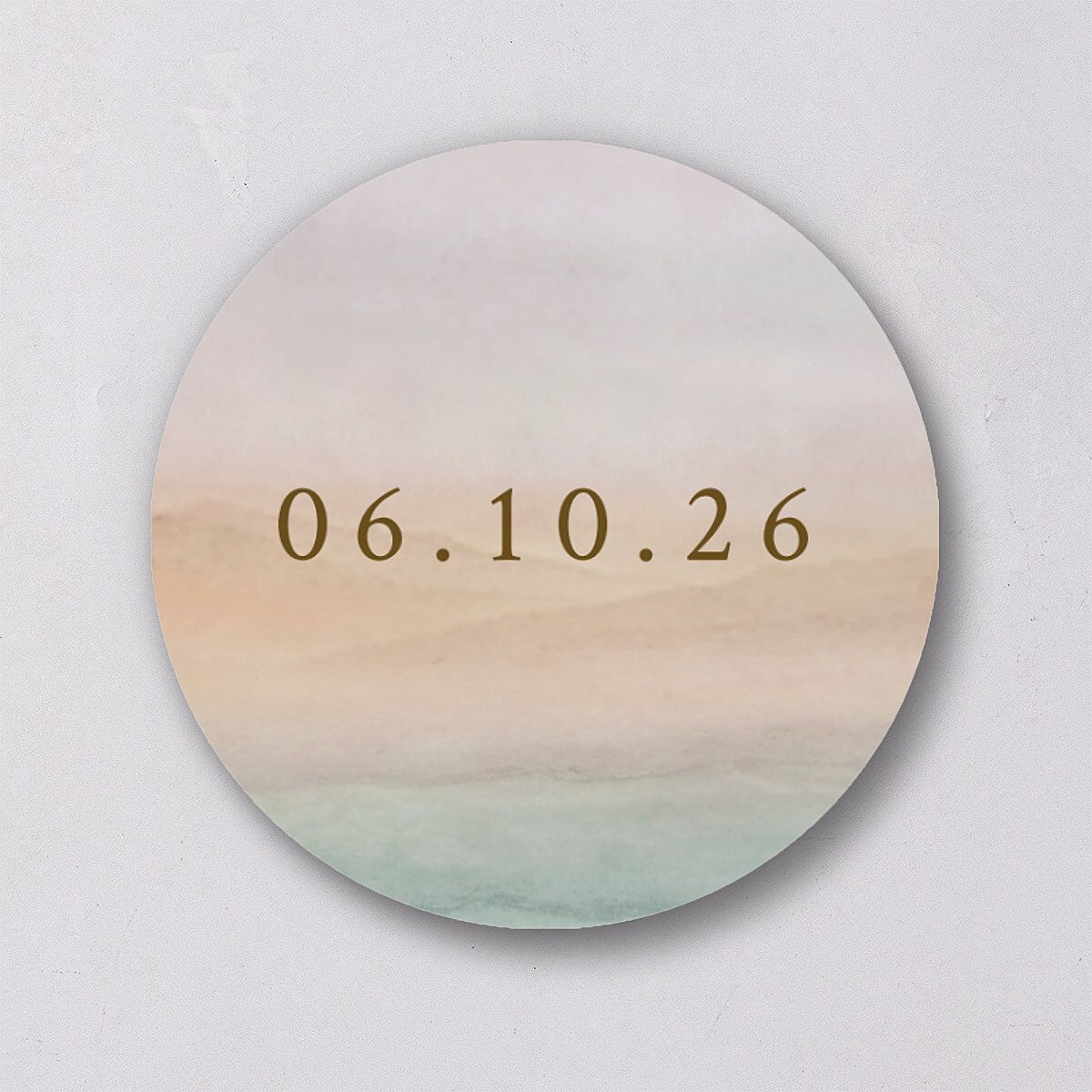 Make your ethereal event a day to remember with personalized wedding stickers. These circular stickers feature sunset backdrops with your wedding date glistening in the center.