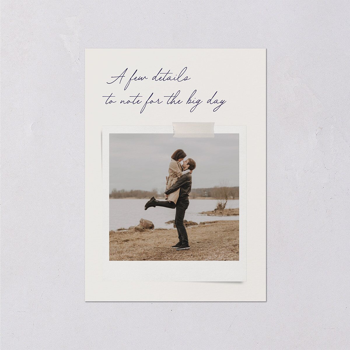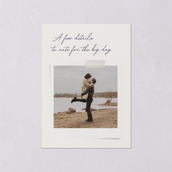 Inspired by the layout of a heartfelt love letter, these wedding enclosure cards feature a DIY-style attached photo beneath a handwritten-style introduction sharing key details with your loved ones. A link to your wedding website provides additional information.