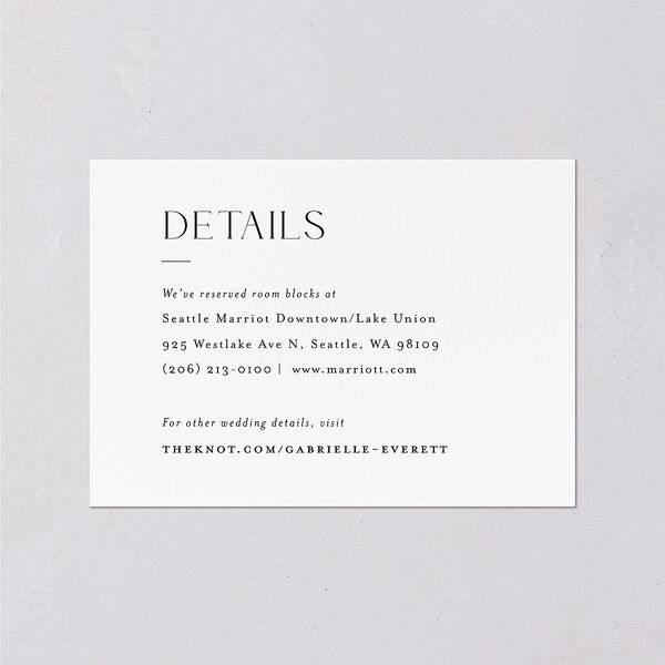 This refined wedding enclosure card displays your wedding details against a blank background. Its variety of classic fonts enhances the card's understated elegance.