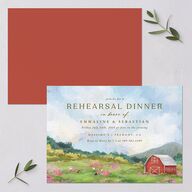 Set the tone for your upcoming nuptials with rehearsal dinner invitations featuring your event details above a scenic country landscape. The back is filled with a rich color to complement the front for a sense of depth and cohesion.