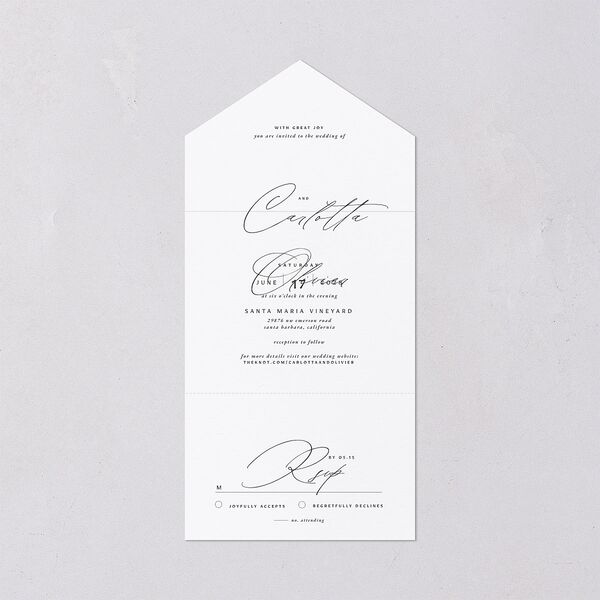 Let your love story speak for itself. These all-in-one invitations feature a simple, classic design to match any wedding theme.