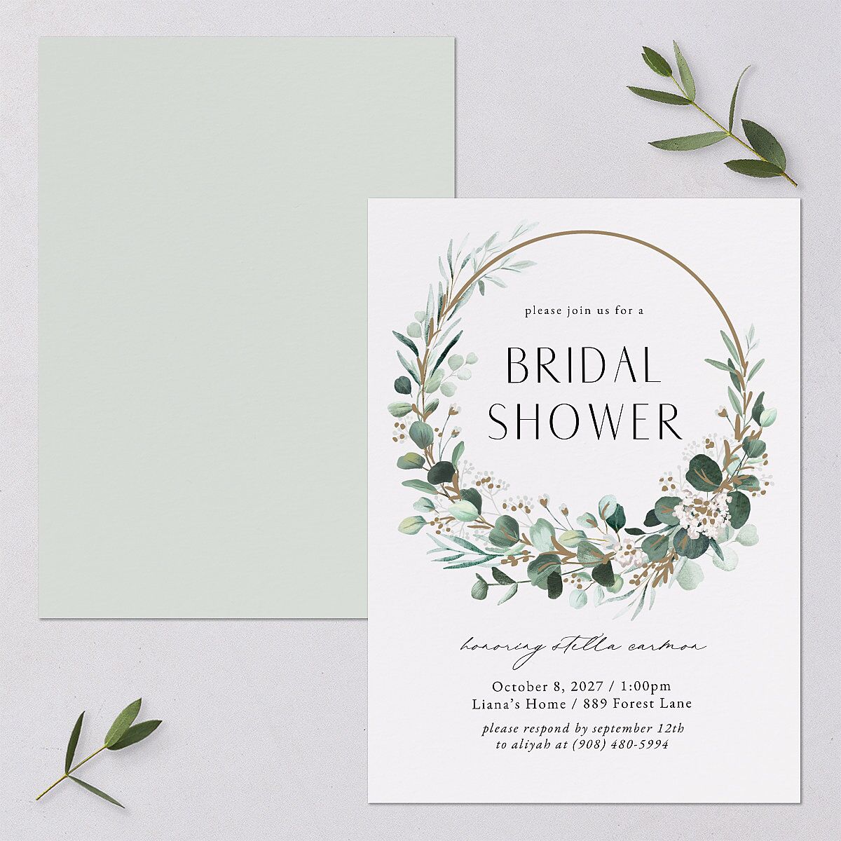 These bridal shower invitations feature a lush frame of floral illustrations, surrounding your details. This information is set in serif and sans-serif font.