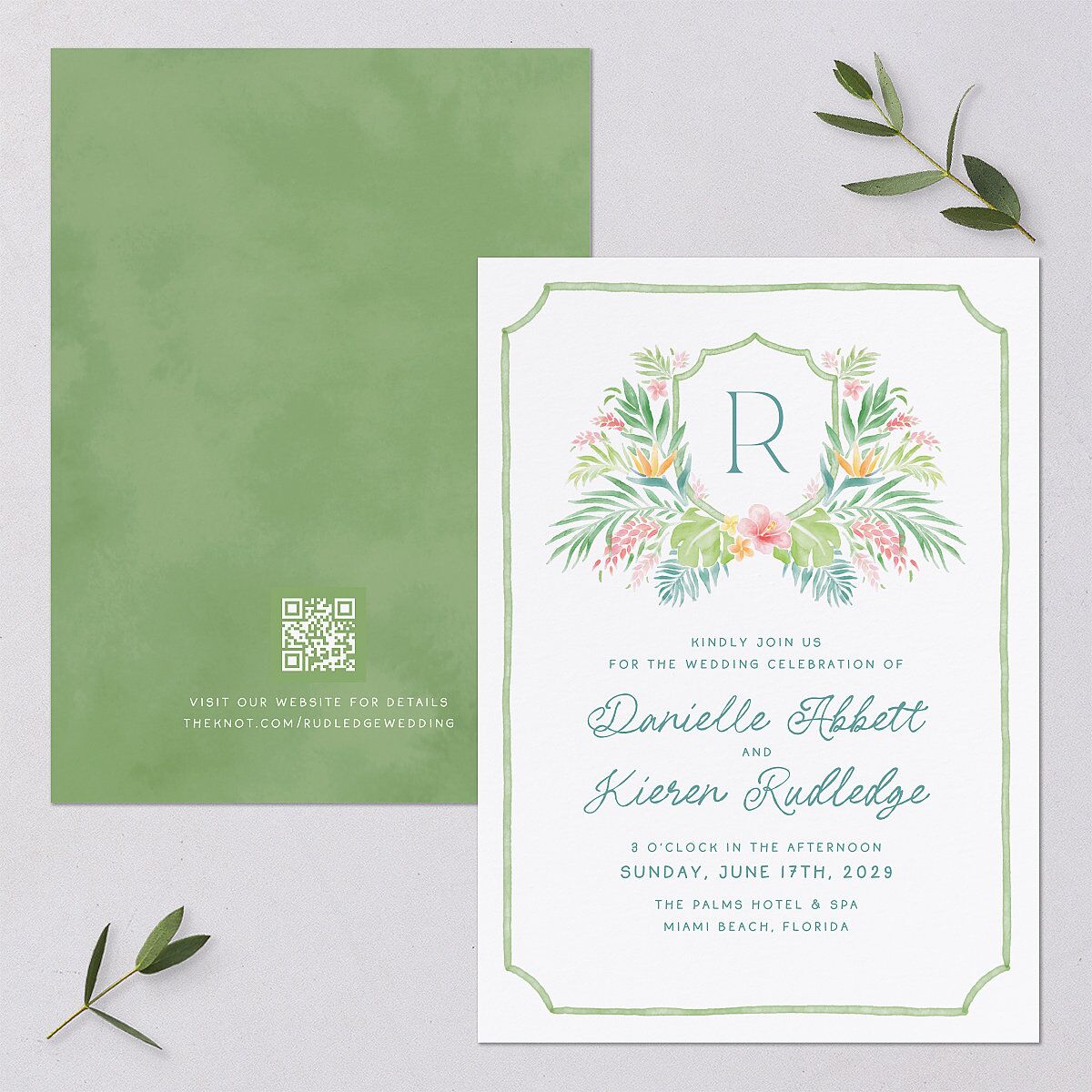 Watercolor Palm Crest Wedding Invitations